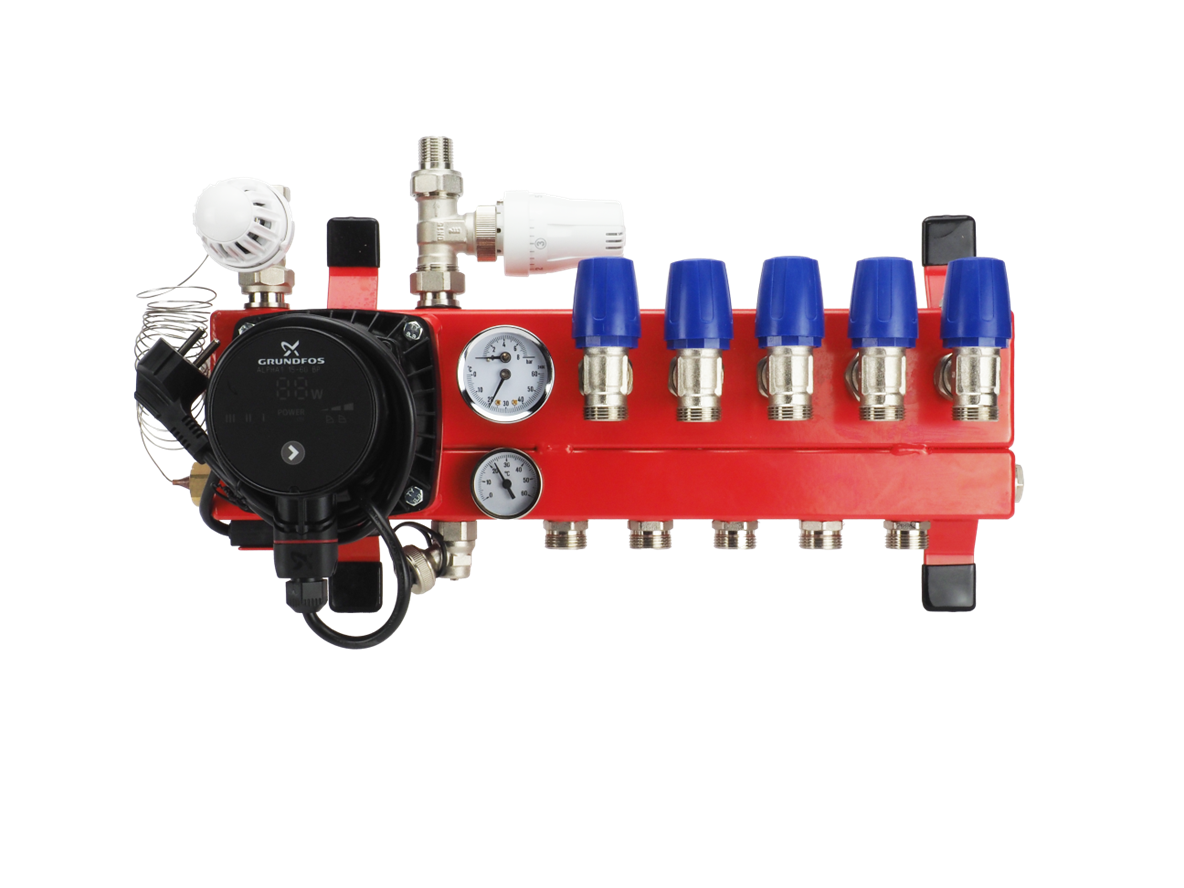 De verdeler is standaard uitgerust met een energiezuinige Grundfos ALPHA1 pomp.