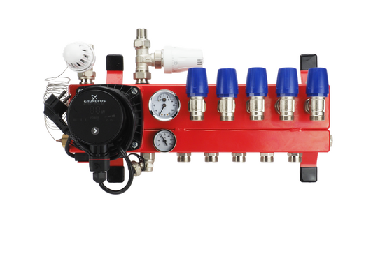 De verdeler is standaard uitgerust met een energiezuinige Grundfos ALPHA1 pomp.