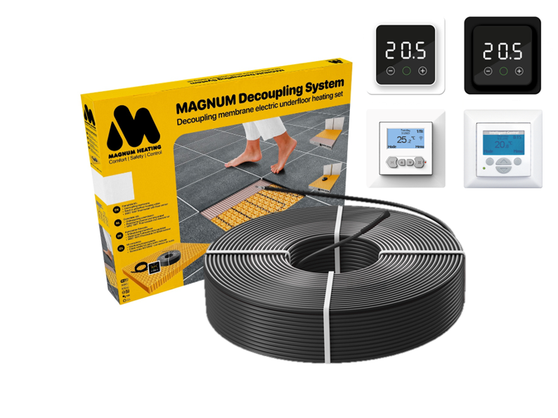 Deze MAGNUM sets met 4,5mm verwarmingskabel zijn verkrijgbaar in 15 verschillende kabellengtes en worden geleverd met een MAGNUM inbouw-thermostaat naar keuze. U kunt hierbij kiezen uit de F32, MIC² of MRC² met WiFi-functie of de gebruiksvriendelijke MIC-klokthermostaat.