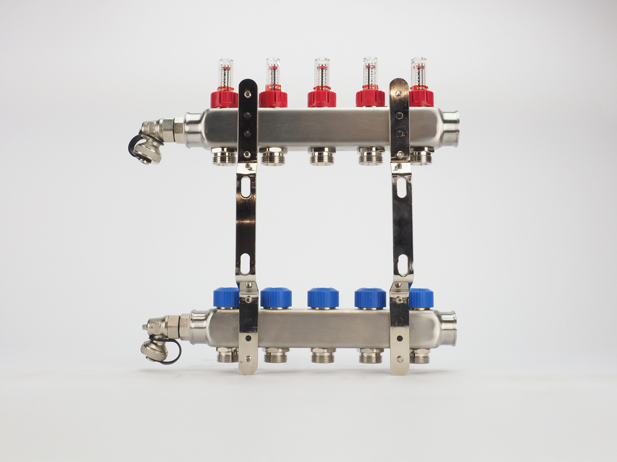 Deze basisuitvoering van de open RVS collector bestaat uit roestvast stalen modules uit één geheel, die door middel van ophangbeugels aan de wand gemonteerd worden. De verdeler is geschikt voor laagtemperatuursystemen en voorzien van inregelbare flowmeters waarmee de doorstroom van water per groep ingeregeld kan worden.
