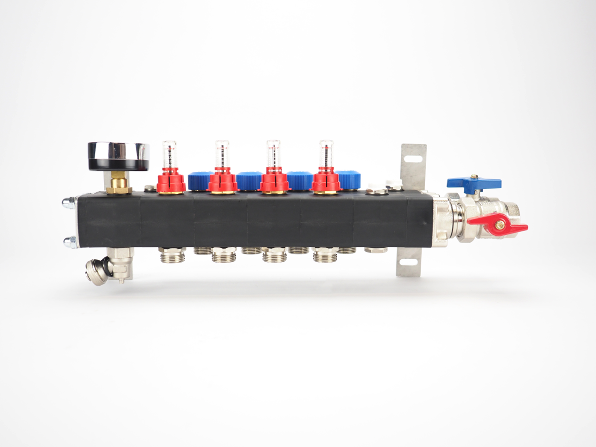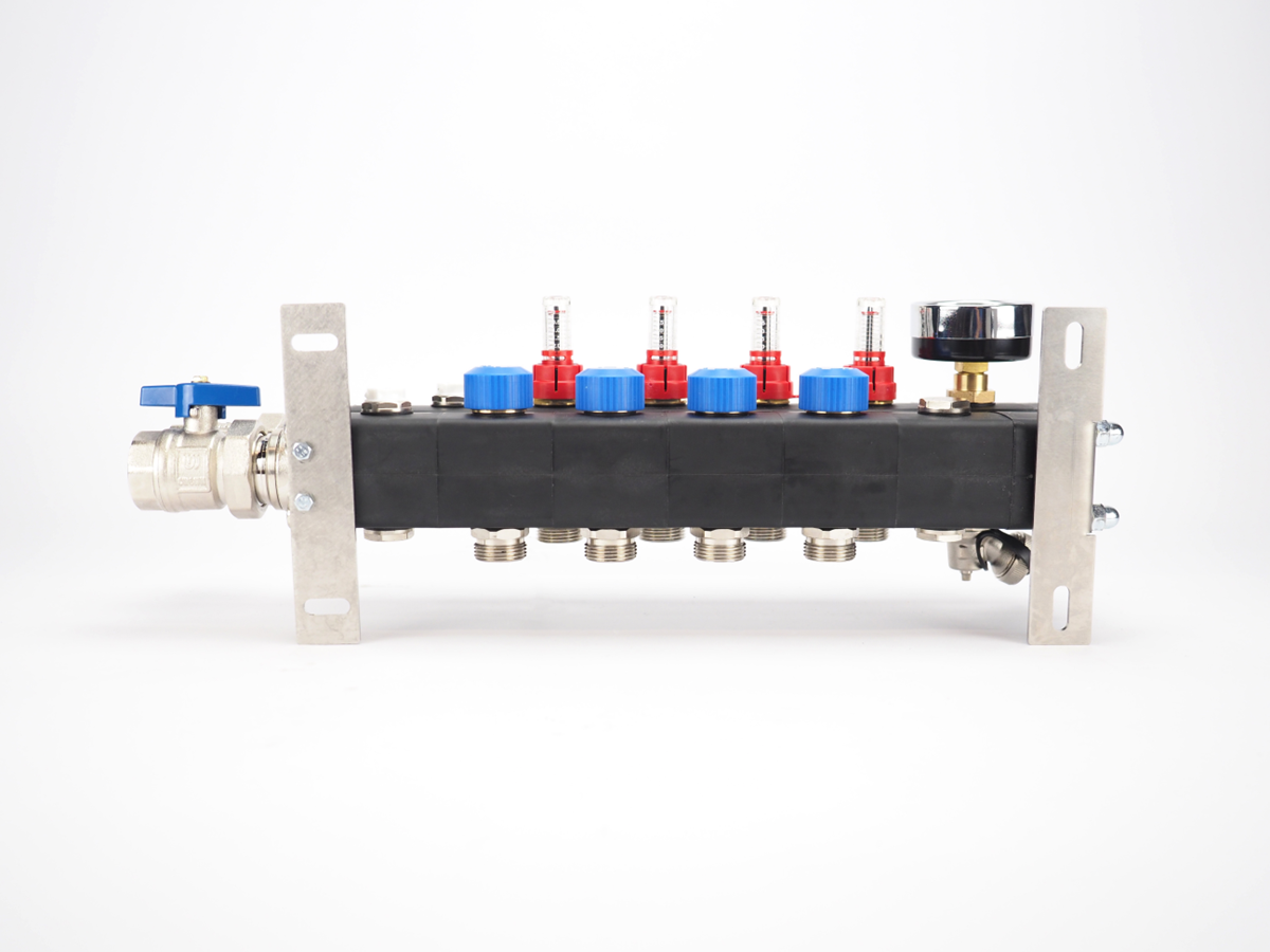 Sterke kunststof vloerverwarming verdeler van losse componenten met flow-meters inbegrepen;