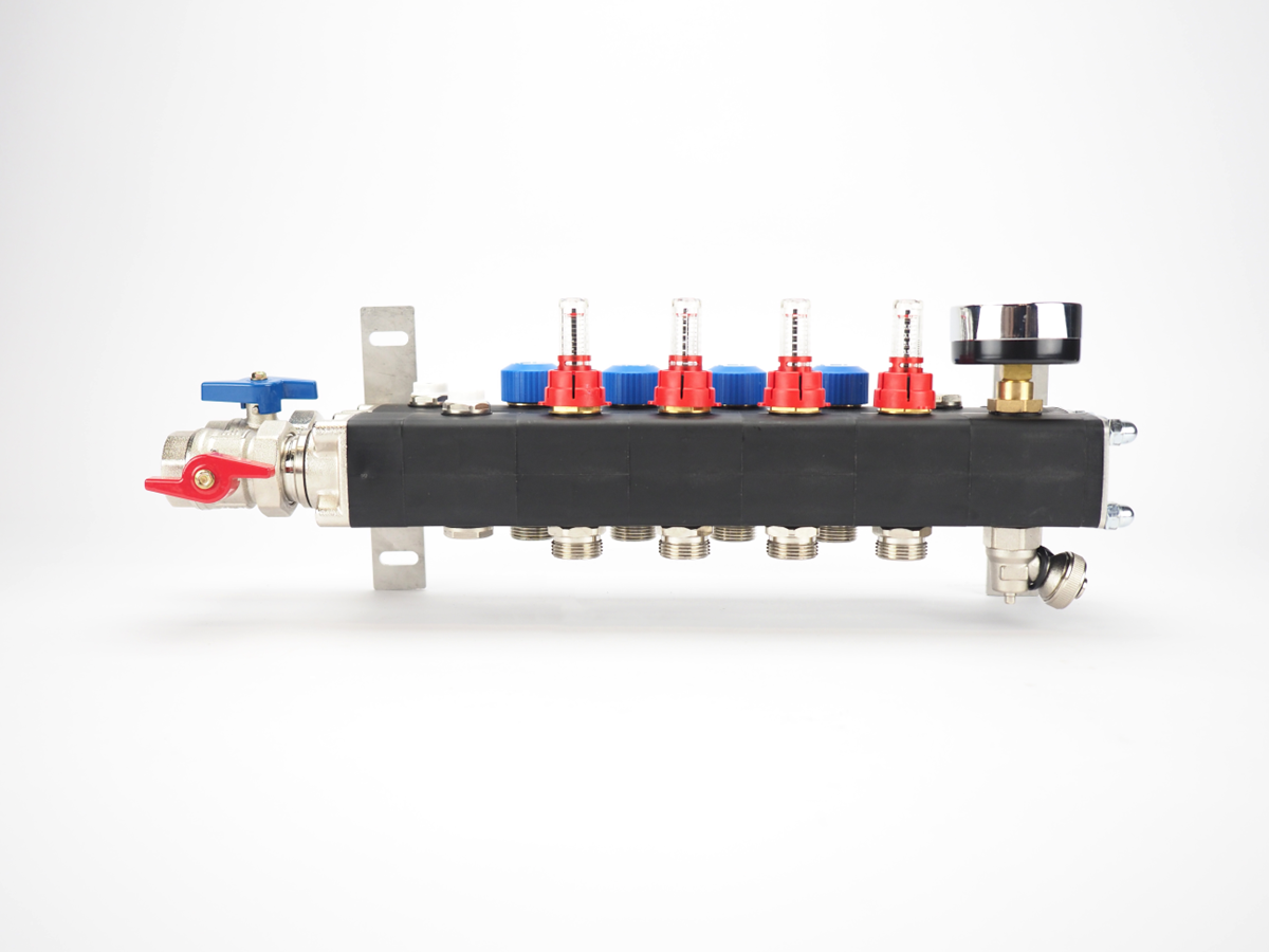 Sterke kunststof vloerverwarming verdeler van losse componenten met flow-meters inbegrepen;
