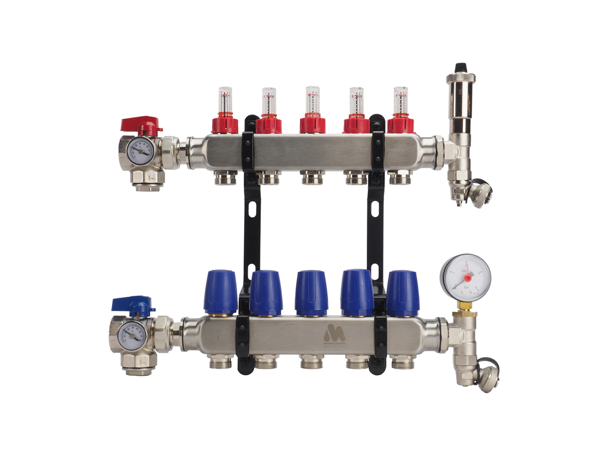 Sterke vloerverwarming verdeelunit van RVS modules met flow-meters inbegrepen;