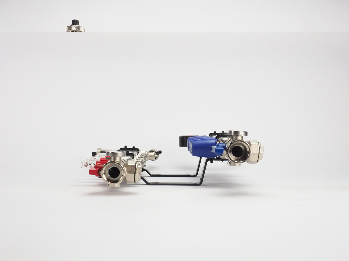 aanvoer met kogelafsluiter, 1" thermometer aanvoer inregelbare flowmeter aanvoer vloerverwarmingsbuizen automatische ontluchter vul-/aftapkraan retour met kogelafsluiter, 1" thermometer retour thermostatische afsluiter met M30 draad retour vloerverwarmingsbuizen vul-/aftapkraan manometer |