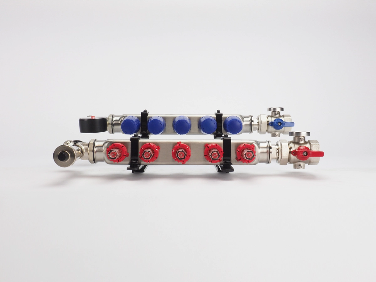 Deze open RVS collector bestaat uit roestvast stalen modules uit één geheel, die door middel van ophangbeugels aan de wand gemonteerd worden. De verdeler is geschikt voor laagtemperatuursystemen en voorzien van inregelbare flowmeters waarmee de doorstroom van water per groep ingeregeld kan worden.