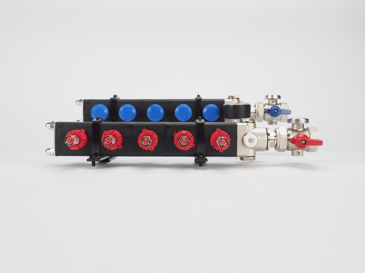 De losse elementen zijn vervaardigd van een met glasvezel versterkte polyamide, die zeer geschikt is voor hoge, maar ook lage temperaturen. De elementen hebben een dubbelwandige opbouw waardoor automatisch een isolatielaag wordt gevormd. Dit maakt deze verdeler uitermate geschikt voor verwarmen, maar ook voor koelen. Door deze isolatielaag ontstaat nagenoeg geen condensvorming op de collector. Deze verdeelunit wordt daarom veel toegepast in combinatie met een warmtepomp, die in de winter verwarmd en in de zomer koelt. Standaard is deze verdeler voorzien van 1” kogelkranen, een handmatige ontluchter en inregelbare flowmeters.