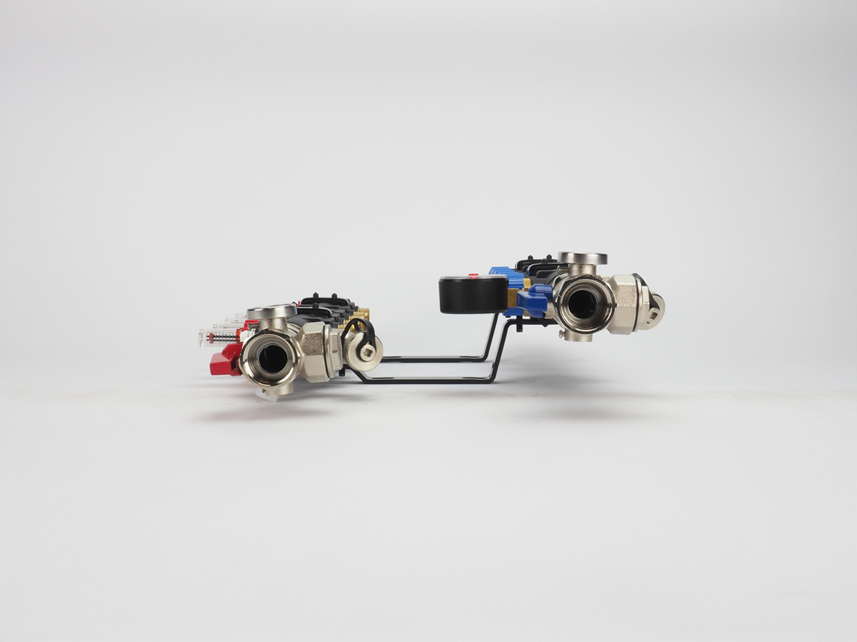 Sterke kunststof vloerverwarming verdeelunit van losse componenten met flow-meters inbegrepen;