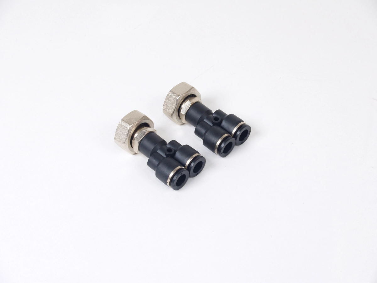 "Push-Fit" splitters maken het mogelijk om 2 buizen van 10mm aan te sluiten op 1 verdelergroep. Dit kan het benodigd aantal groepen omlaag brengen, omdat het niet nodig is om uit te gaan van een groep per buis.