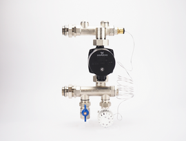 Bij installaties op een hybride warmtebron (bijvoorbeeld een warmtepomp en CV-toestel), waarin grote fluctuaties kunnen optreden in de primaire aanvoertemperaturen, is het raadzaam om gebruik te maken van deze uitbreidingsset voor de temperatuurregelaar met pomp.