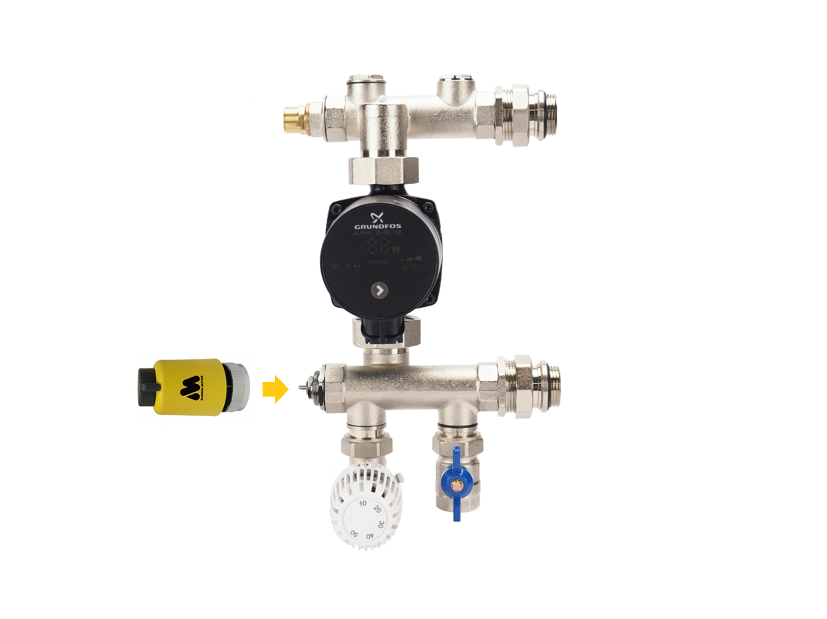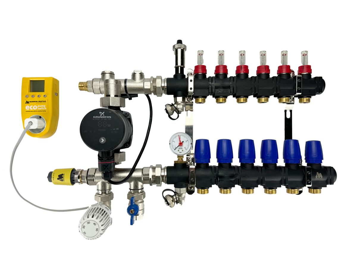 Een hybride verdeler meet de aanvoertemperatuur met behulp van een clipsensor, die op de aanvoerleiding geklemd wordt, en past automatisch het inregelventiel van de pompregelaar aan. Bij lage aanvoertemperaturen is er geen menging en bij hogere aanvoertemperaturen wordt het water gemengd tot een geschikte temperatuur voor de vloer. Ook wanneer er tijdens de zomermaanden met het systeem gekoeld wordt, blijft menging achterwegen. Hierdoor zal een hybride vloerverwarmingsverdeler op elk moment in het jaar optimaal functioneren